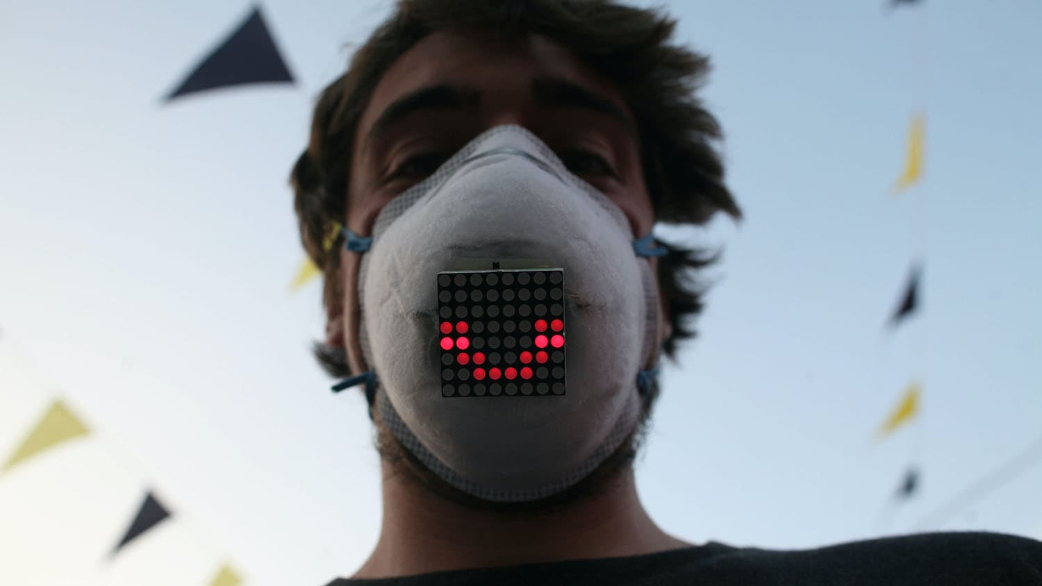 So I basically made up a mask with an LED matrix, which reads whether you’re smiling or what kind of reaction you have and it just shows it in eight bit. It’s very simple and think I saw a copy of that already on Tao Bao.