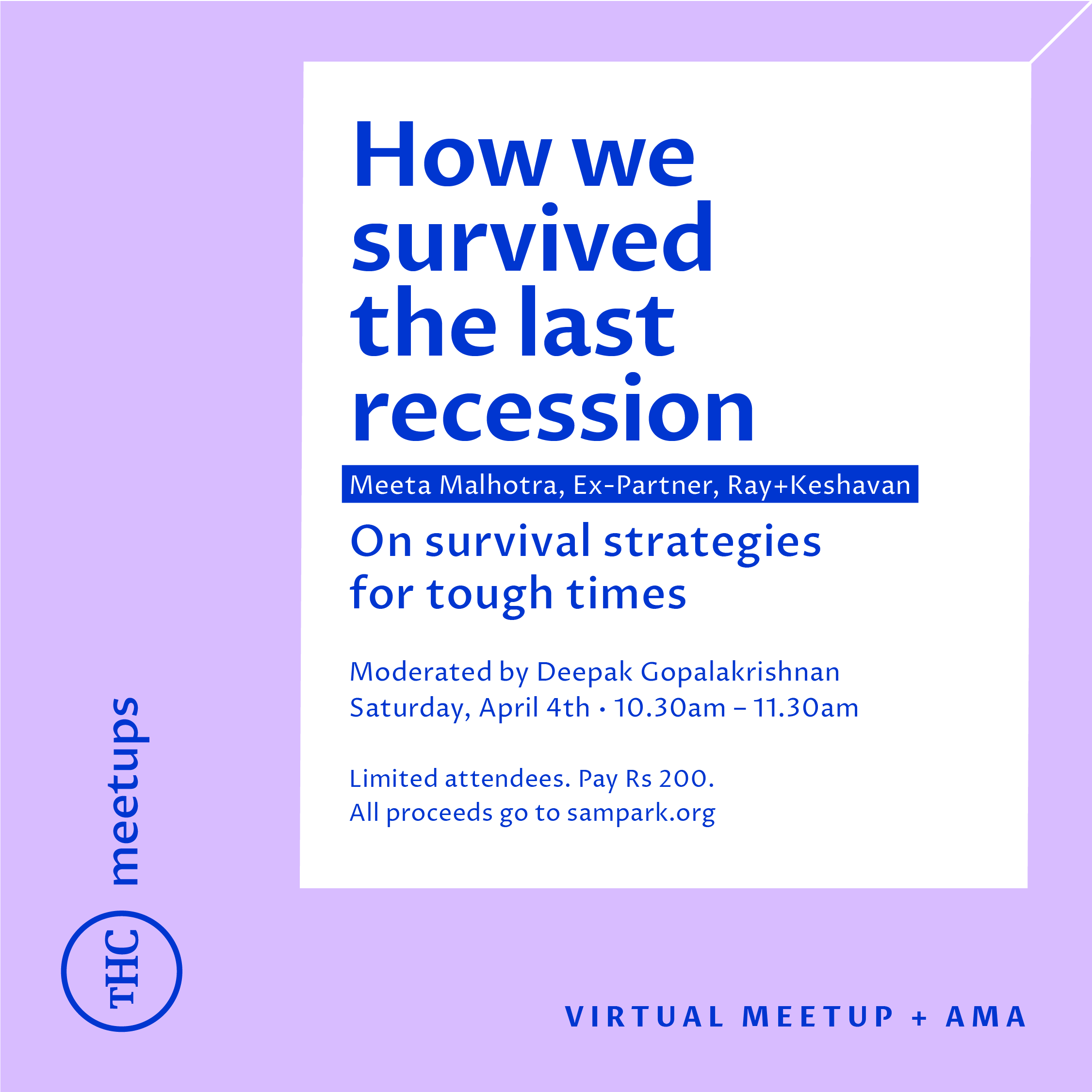 Deepak Gopalakrishnan asks Meeta Malhotra, Founder, The Hard Copy, how design and brand consulting firm, Ray+Keshavan – where she was was one of two partners – survived the 2009 recession.